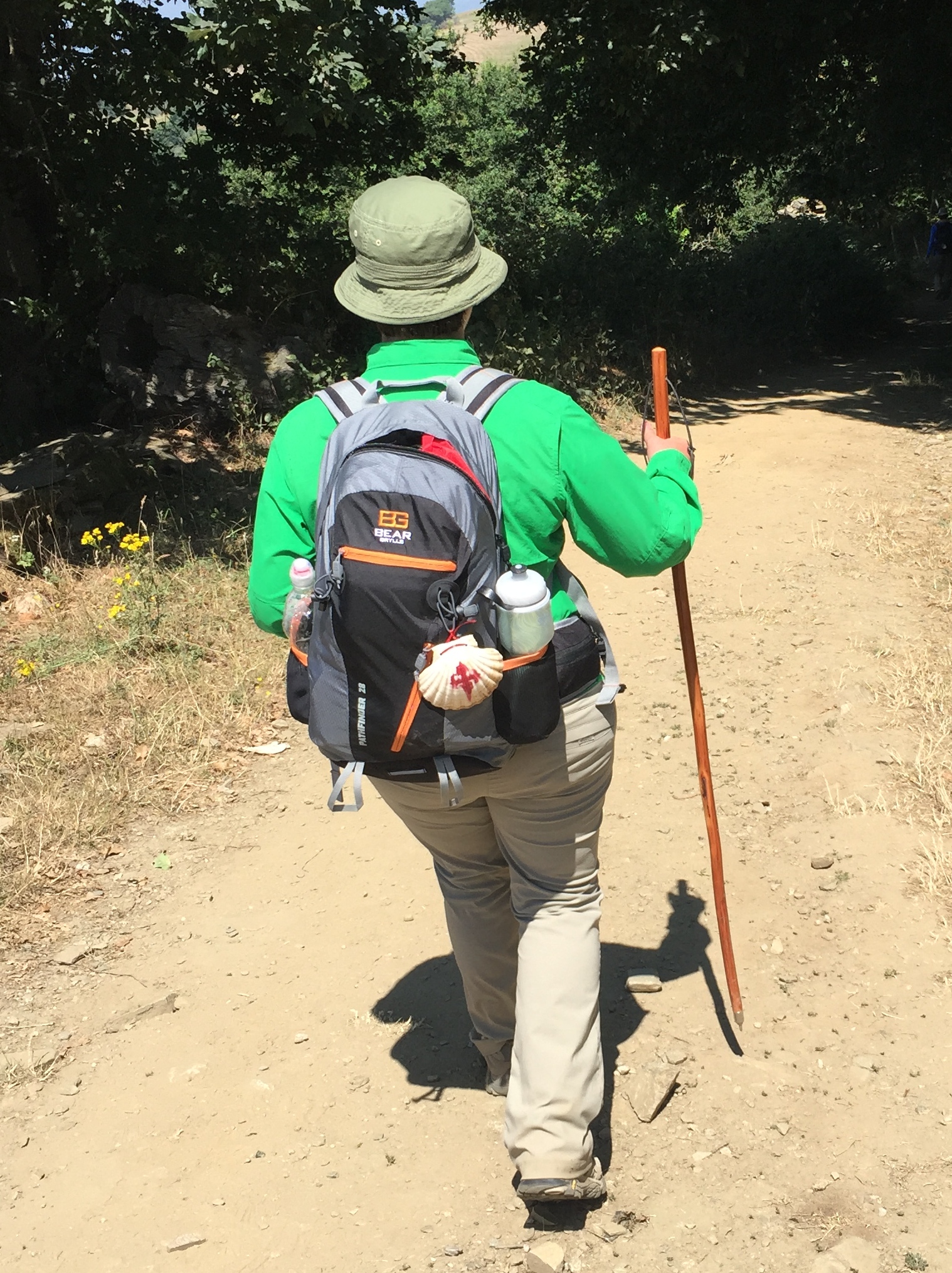 Cosas que no son negociables y que le permitirán disfrutar su viaje y enfrentar cualquier situación son: unos buenos tenis/botas para hacer senderismo «hiking», estrenadas en casa y unas buenas medias. Otro detalle importante es que su mochila tenga un cinturón acojinado para que esté fijo, no le rose la espalda al caminar y le ayude a distribuir el peso. A mi me ayudó mucho tener un bastón, ya sea de madera o de los livianos de aluminio. Algunos prefieren llevar dos. Un kit de primeros auxilios, toallitas húmedas, botella de agua, pañuelo, cámara (yo utilicé mi Iphone con un selfie stick), par de medias extras, sombrero, sun block, algún «anti-friction» stick para prevenir ampollas en los pies y los parchos para curarlas si te salen, merienda, mapa y capa por si llueve.